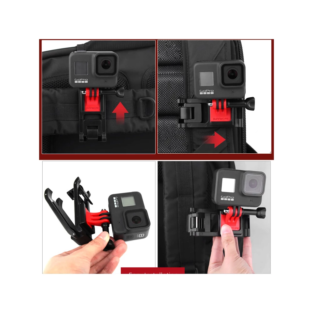 Univerzális övcsipesz adapter DJI Osmo Action, Action 2, 3, 4, Pocket és Pocket 2, 3, valamint Gopro akciókamerához, mely segítségével csatlakoztathatod a kamerádat különböző vastagságú övekre, hátizsákra, vagy vállpántos táskára.