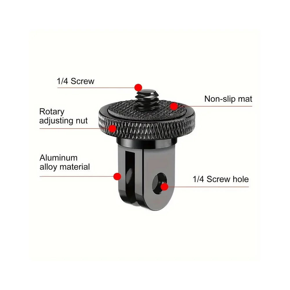 CNC megmunkálással, strapabíró és könnyű alumíniumból készült adapter, amely lehetővé teszi a hozzá rögzített kamera irányszögének beállítását 360° fokban. Az adapter kompatibilis minden kamerával, amely rendelkezik 1/4" colos porttal (pl. DJI Pocket 2, 3, Insta360 One X/X2, és számos SLR kamera)