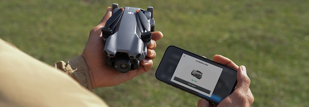 A Mini 5 Pro támogatja a távoli ébresztést a DJI Fly alkalmazáson keresztül, Bluetooth-hatótávolságon belül. A drón vagy a távirányító használata nélkül is átvihetők a fájlok akár 100 MB/s sebességgel a Wi-Fi 6-on keresztül. A DJI Fly app még más alkalmazásokra való váltás közben is folytatja a letöltést a háttérben.
