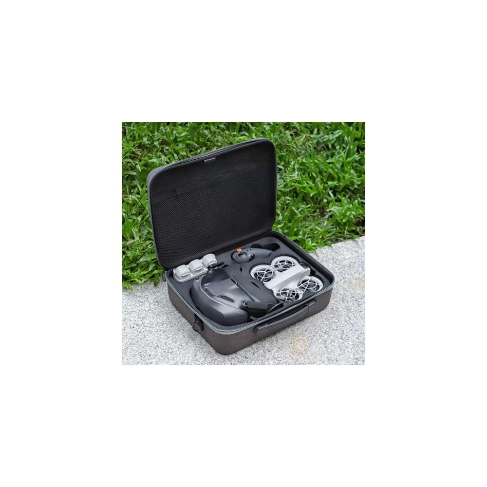 Stílusos, ütés-, nedvesség- és porálló álló, exkluzív szövet borítású hordtáska, melyben biztonságosan és kényelmesen szállíthatod DJI Neo drónodat, távirányítódat, FPV szemüvegedet, kiegészítőket, illetve a plusz akkumulátorokat és a töltő HUB-ot. Az eszközök biztonságáról a puha, rezgéscsillapító belső kialakítás gondoskodik, a minőségi külső borításnak köszönhetően pedig a táska külseje miatt sem kell aggódnod. A csomag tartalmaz egy vállpántot is a kényelmes hordhatóságért