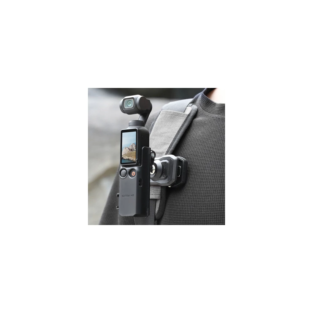Műanyag multifunkcionális adapter DJI Pocket 3 kamerákhoz. A könnyedén felhelyezhető tok védelmet biztosít a kamera számára, miközben számos akciókamera kiegészítőhöz csatlakoztatható lesz az eszköz. A tartón 1/4 colos fotós menet, fésűs akciókamera és vakupapucs adapter is található.