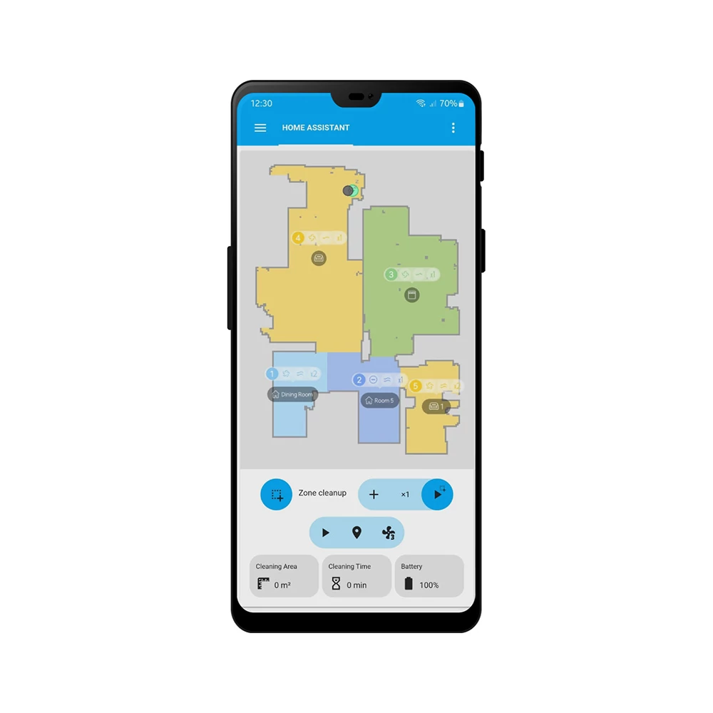A robot hatékonyan navigál az akár 20 mm magas küszöbökön, és pontosan elkerüli az akadályokat a beépített ütközésgátló érzékelőknek és az esésgátló technológiának köszönhetően. A rendszer lehetővé teszi, hogy biztonságosan mozogjon otthonodban - még a kábelek, bútorok vagy lépcsők körül is. Olyan no-go zónákat is beállíthatsz, amelyekbe a robot nem léphet be.