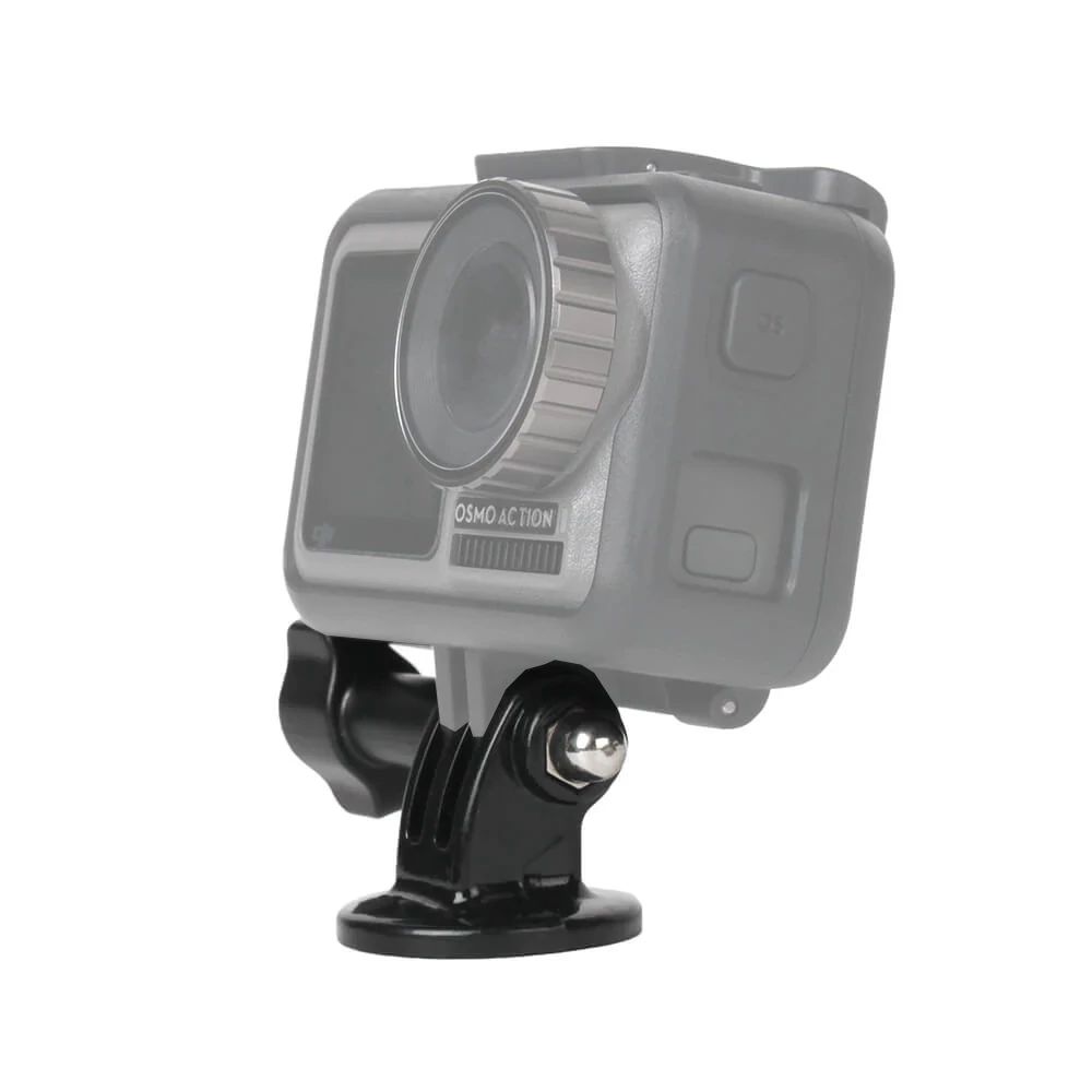 Multifunkcionális adapter DJI Osmo Action, Gopro, Insta 360 Ace sorozatú és más akciókamerákhoz, mely segítségével csatlakoztathatod a kamerádat számos kiegészítőhöz, illetve a fotózásban használatos állványokhoz. A talpa 1/4 colos menettel rendelkezik, a másik pedig szabványos fésűs akciókamera csatlakozással