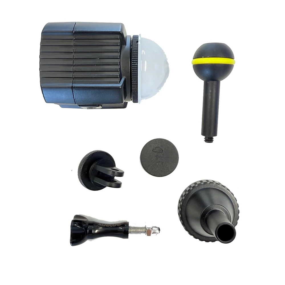 • Széleskörű kompatibilitás. Az 1/4 colos szabványos fotós menet kompatibilissé teszi a lámpát, akciókamerákkal, DSLR és MILC fényképezőgépekkel, állványokkal és lámpaállványokkal és vízi robogókkal