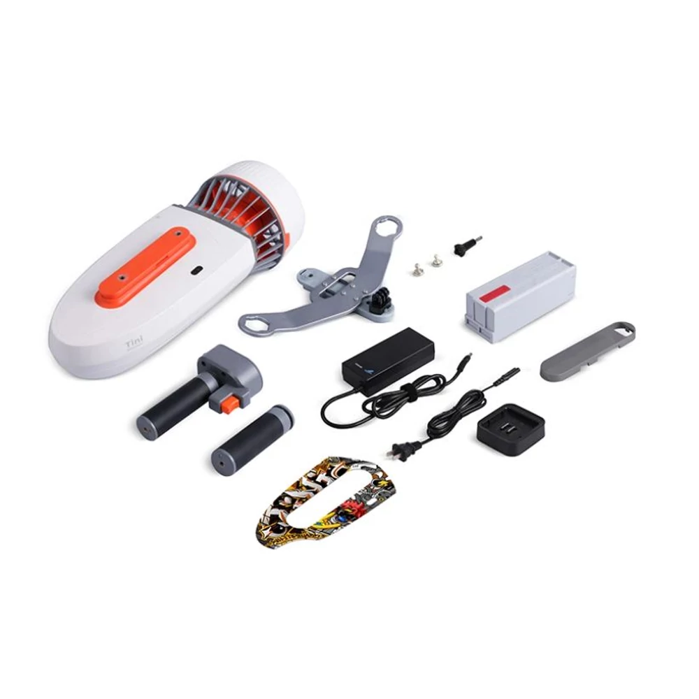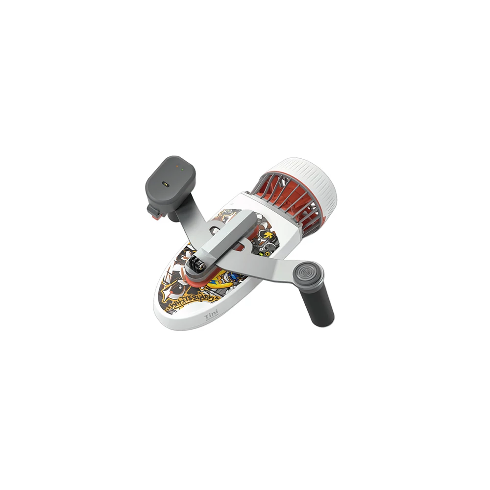 Moduláris kialakításának köszönhetően egyszerűen összekapcsolhatsz két eszközt, ezzel megkettőzve a teljesítményt. Két motoros konfigurációban a WhiteShark Tini a leggyorsabb ilyen jármű a piacon. Nem számít, hogy jobb, vagy balkezes a felhasználó, a Tini kezelőszervei pillanatok alatt átszerelhetők az egyik oldalról a másikra. Amiatt sem kell aggódnunk, hogy elveszítenénk az eszközt. A WhiteShark Tini felszerelhető egy áramvonalas bójával, melynek segítségével képes lesz lebegni is.