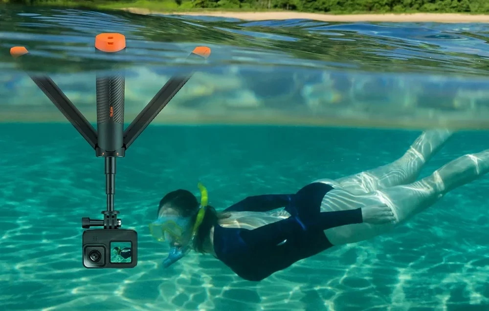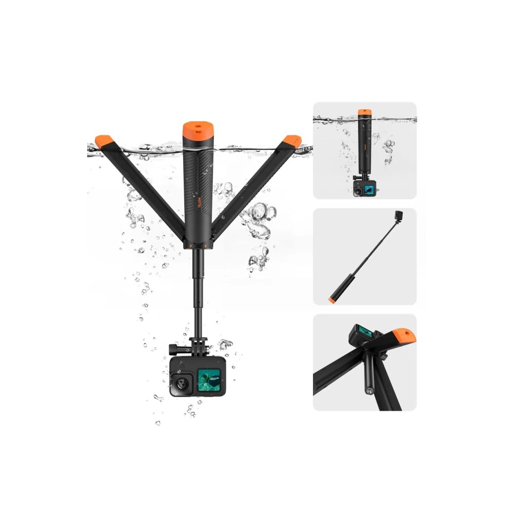 A TELESIN univerzális megoldást hozott létre az extrém sportok, a búvárkodás és minden szabadtéri tevékenység kedvelői számára. Ez az egyetlen termék akár négy funkciót is egyesít - úszóbólya, teleszkópos szelfibot, tripod állvány és klasszikus markolat szerepét is betölteni. Ez teljes szabadságot biztosít a felvételek készítéséhez bármilyen körülmények között - szárazföldön és víz alatt - anélkül, hogy több különböző tartozékot kellene magaddal vinned.