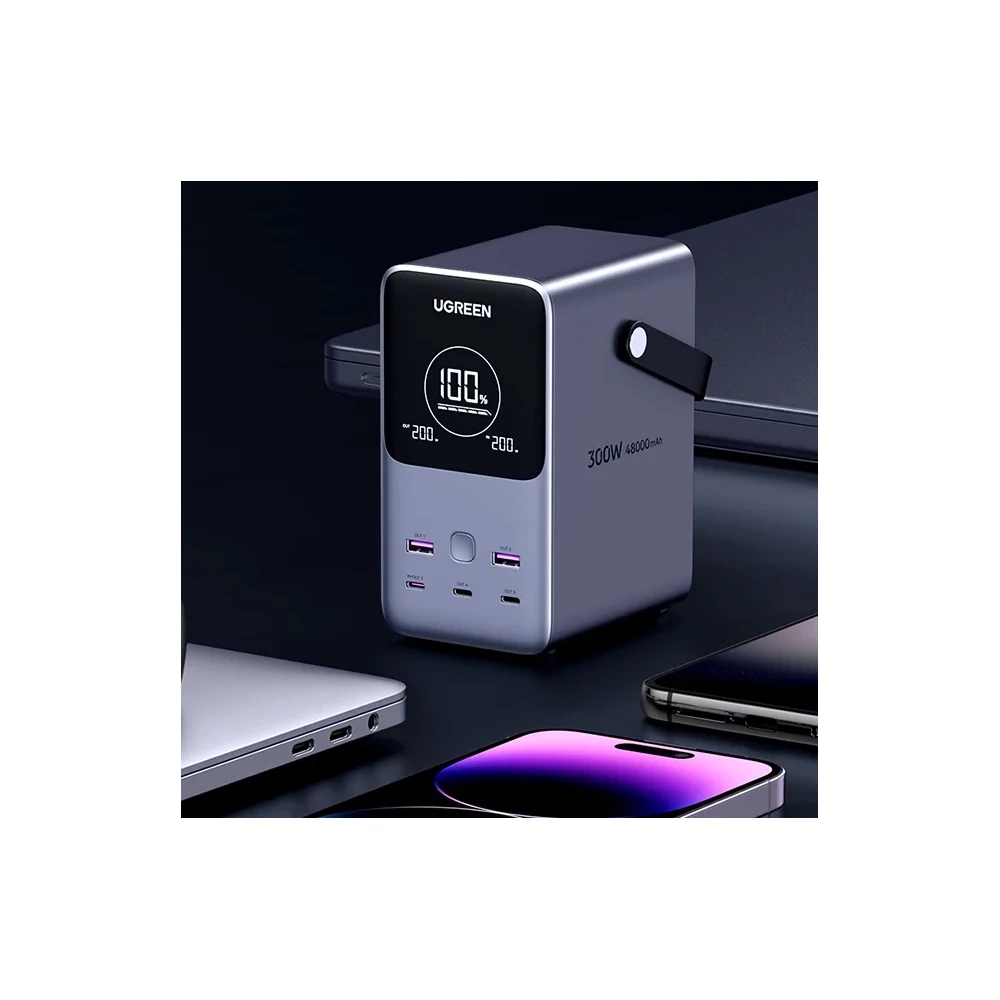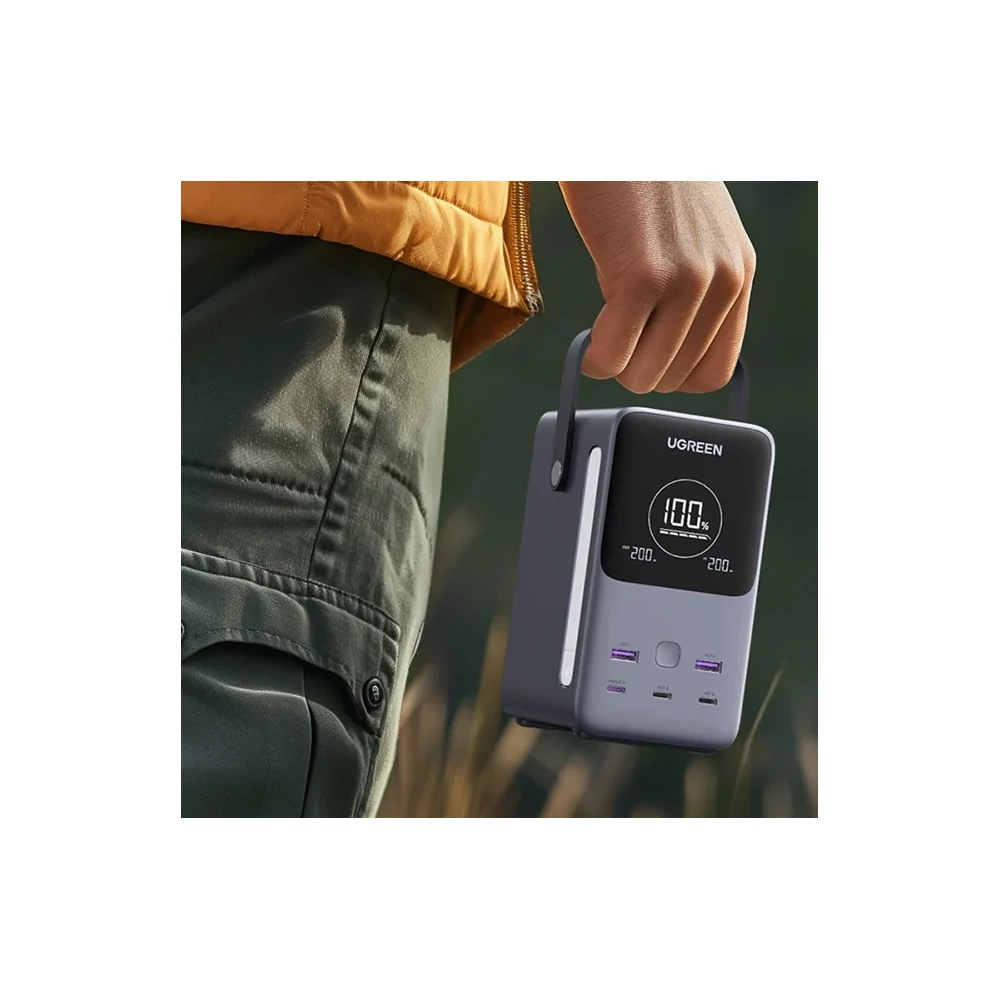 A UGREEN PB770 powerbank egy igazi erőmű kompakt csomagolásban. A 300 W-os maximális teljesítménnyel és 5x USB kimeneti porttal több eszközt is gyorsan tölthetsz egyszerre. Kapacitása eléri a 48.000 mAh-t, és a Lifepo4 akkumulátornak köszönhetően nem csak nagyobb teljesítményt és hosszabb élettartamot garantál, hanem a biztonságot is használat közben. A beépített digitális kijelző és a 3 üzemmódú lámpa még élvezetesebbé teszi a használatát.